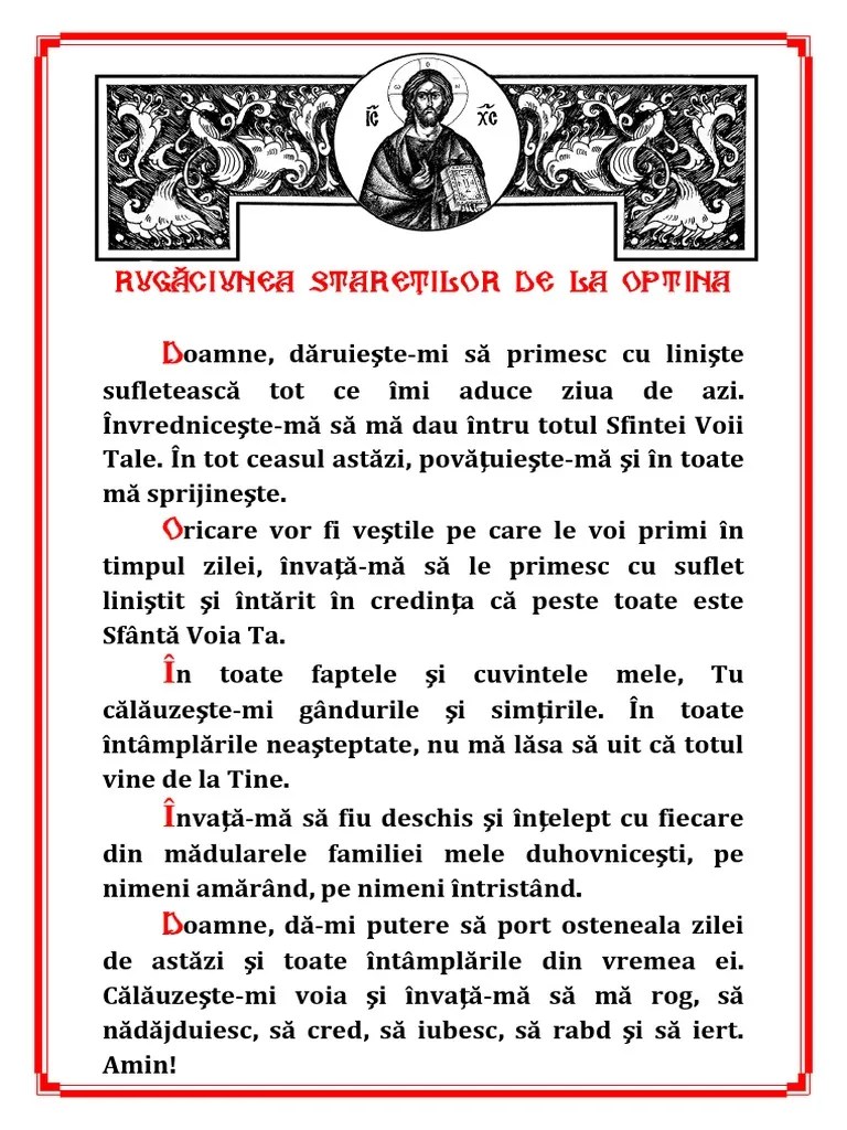 11.10.2011 · rugaciunea de dimineata a staretilor de la optina (11 octombrie). Toate câte le voi auzi şi mi se vor întâmpla în. 10.10.2018 · rugaciune catre sfantul ambrozie de la optina. Tot astazi este pomenit si personal unul. O, mare stareț și drept al lui dumnezeu, cuvioase părinte al nostru ambrozie, lauda optinei și al întregii rusii, învățător al evlaviei!