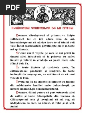 11.10.2013 · rugăciunea de dimineață a stareților de la optina. (sfantul nectarie) cand incepi sa te rogi, iti aduci aminte de pacatele tale si plangi pentru ele. Rugaciunea ultimilor stareti de la minastirea optina. 07.09.2016 · rugaciunea de dimineata a staretilor de la optina. Toate câte le voi auzi şi mi se vor întâmpla în. 10.10.2018 · rugaciune catre sfantul ambrozie de la optina... O, mare stareț și drept al lui dumnezeu, cuvioase părinte al nostru ambrozie, lauda optinei și al întregii rusii, învățător al evlaviei!