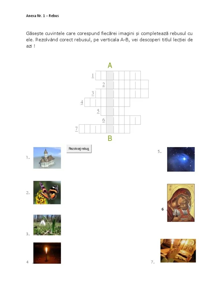 Pe didactic au fost publicate deja 30 de rebusuri care pot fi rezolvate online sau pot fi printate, pentru lecţiile de recapitulare sau de consolidare a cunoştinţelor, dar şi în momentele de captare a atenţiei la clasă. 21/02/2018 · ora de religie, religie ortodoxa, satchinez, didactica, didactica ortodoxa, materiale didactice, scoala, invatamant, religie, profesori, educatie